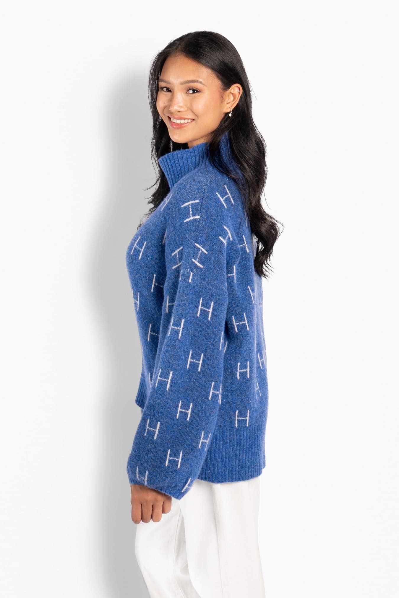 Our best-selling signature sweater, loved for its relaxed fit and timeless elegance. Crafted in a soft, premium knit, it’s designed with a high neckline, voluminous sleeves, and a distinctive H pattern for a modern, elevated look. Featuring a flattering length at the front and a slightly longer length at the back for an elegant silhouette. Light, soft, and comfortable — a sweater you’ll reach for again and again.
