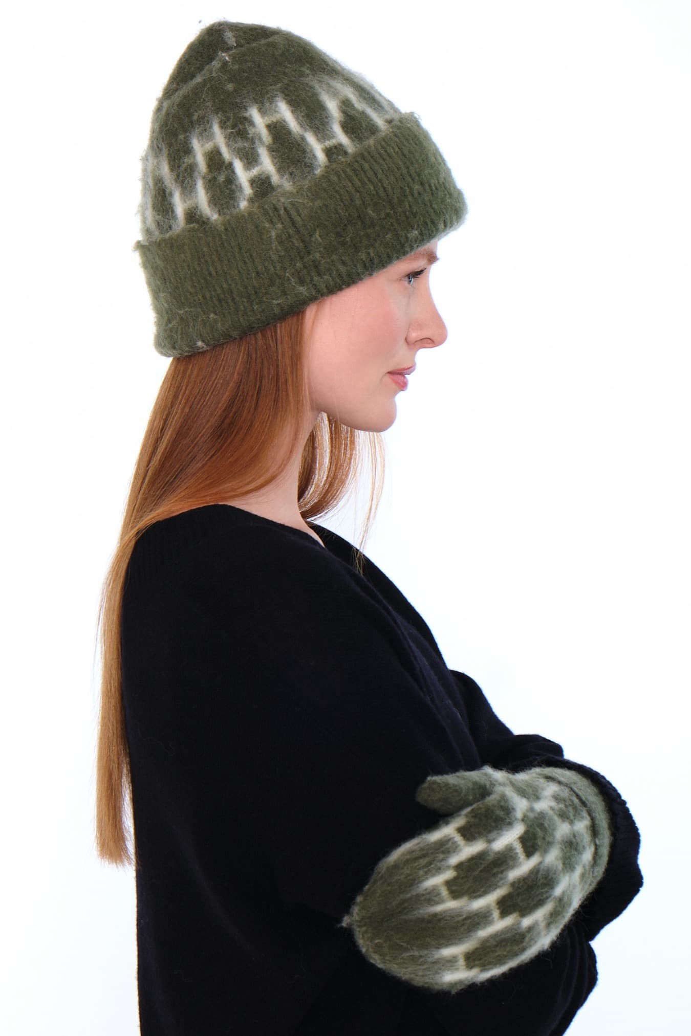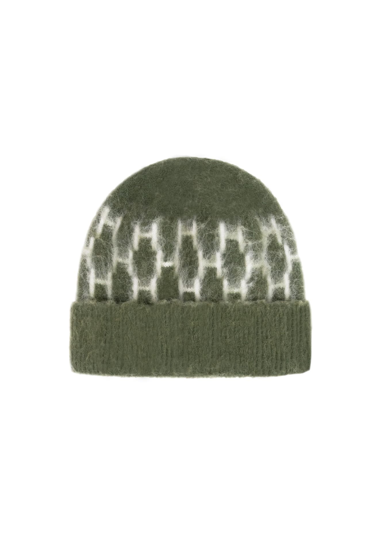 Gera Beanie har en myk, fluffy strikk, oppbrettkant og et detaljert H-mønster. Gir varme og stil i ett – perfekt for kjølige dager. Et lunt og stilsikkert tillegg til vintergarderoben.