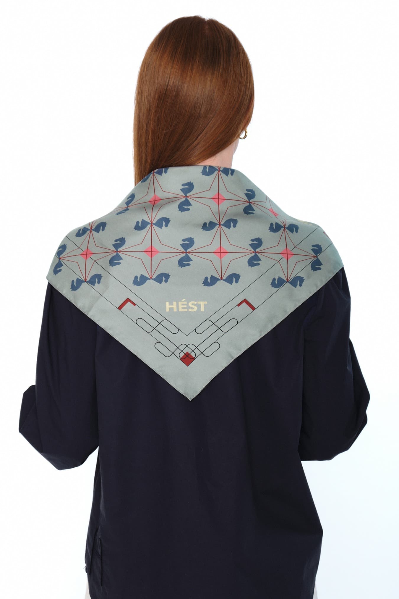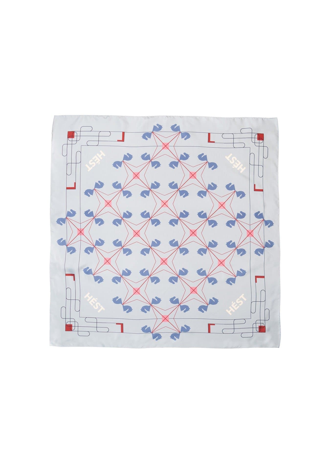 Eliza Silk Scarf Small er laget av 100 % silke med heldekkende print av hester og abstrakte former. Måler 54×54 cm – perfekt rundt halsen, i håret eller på vesken. Et sofistikert tilbehør som løfter ethvert antrekk med eleganse.