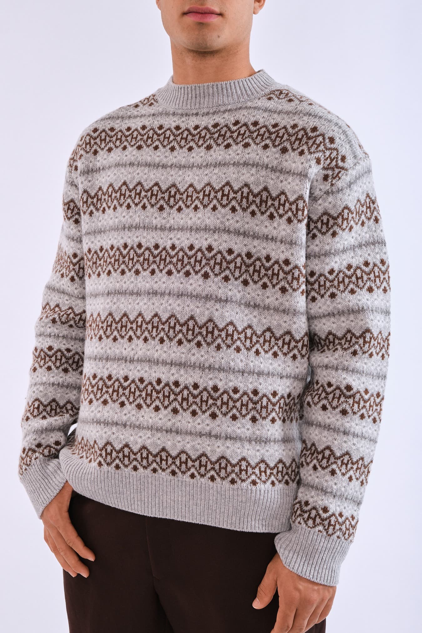 Esben Isle Knit forener tradisjon og modernitet med et Fair Isle-inspirert mønster. Strikket i 100 % supermyk ull for varme og eksklusiv komfort. Et tidløst plagg – oppdatert for en moderne garderobe.