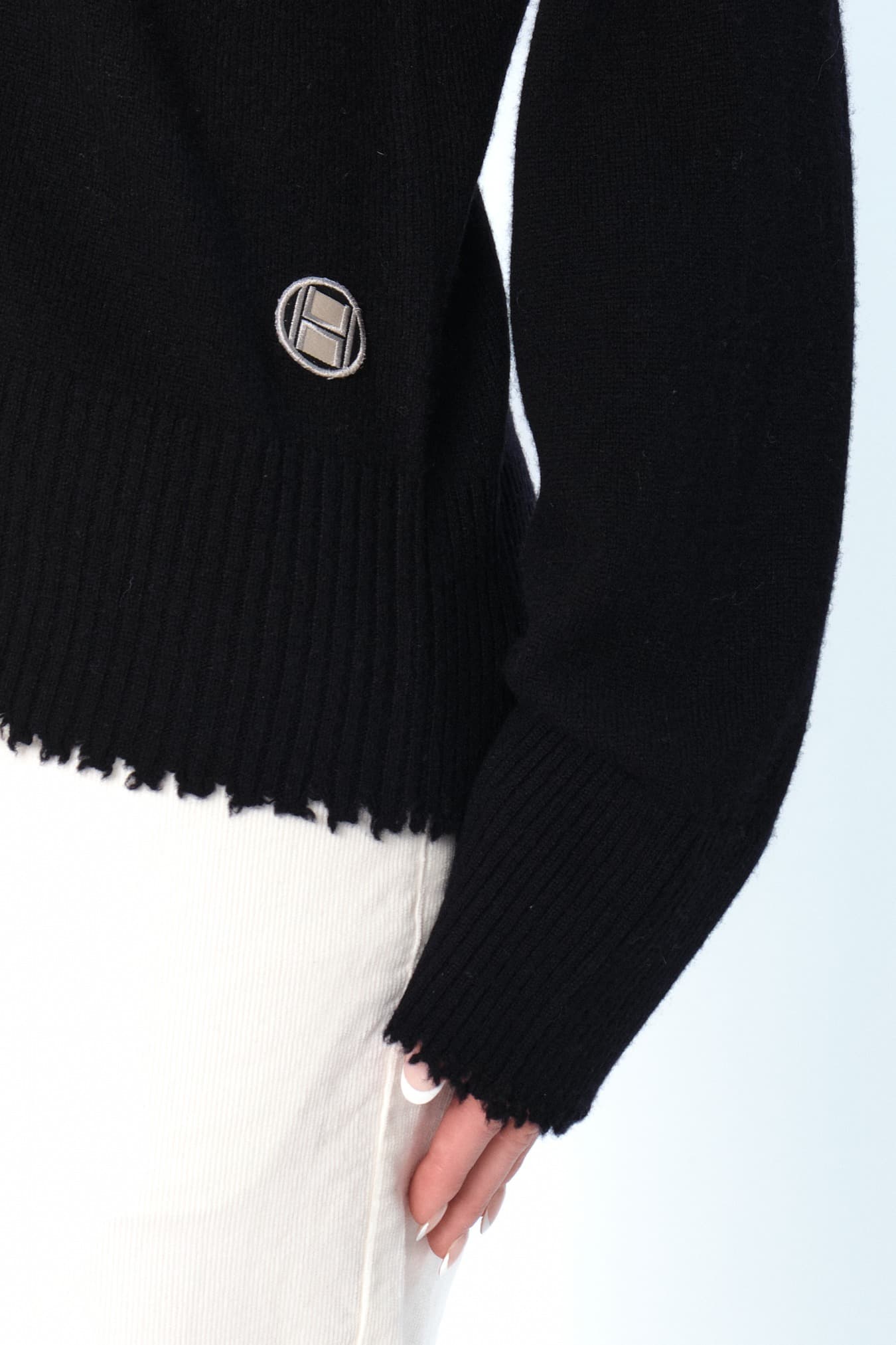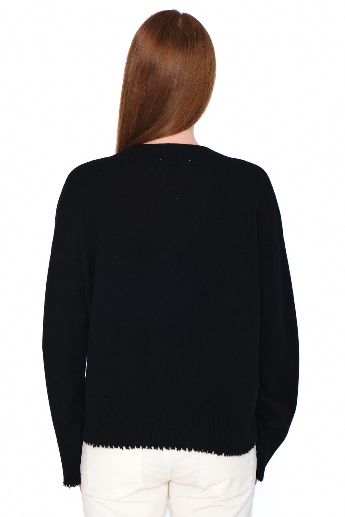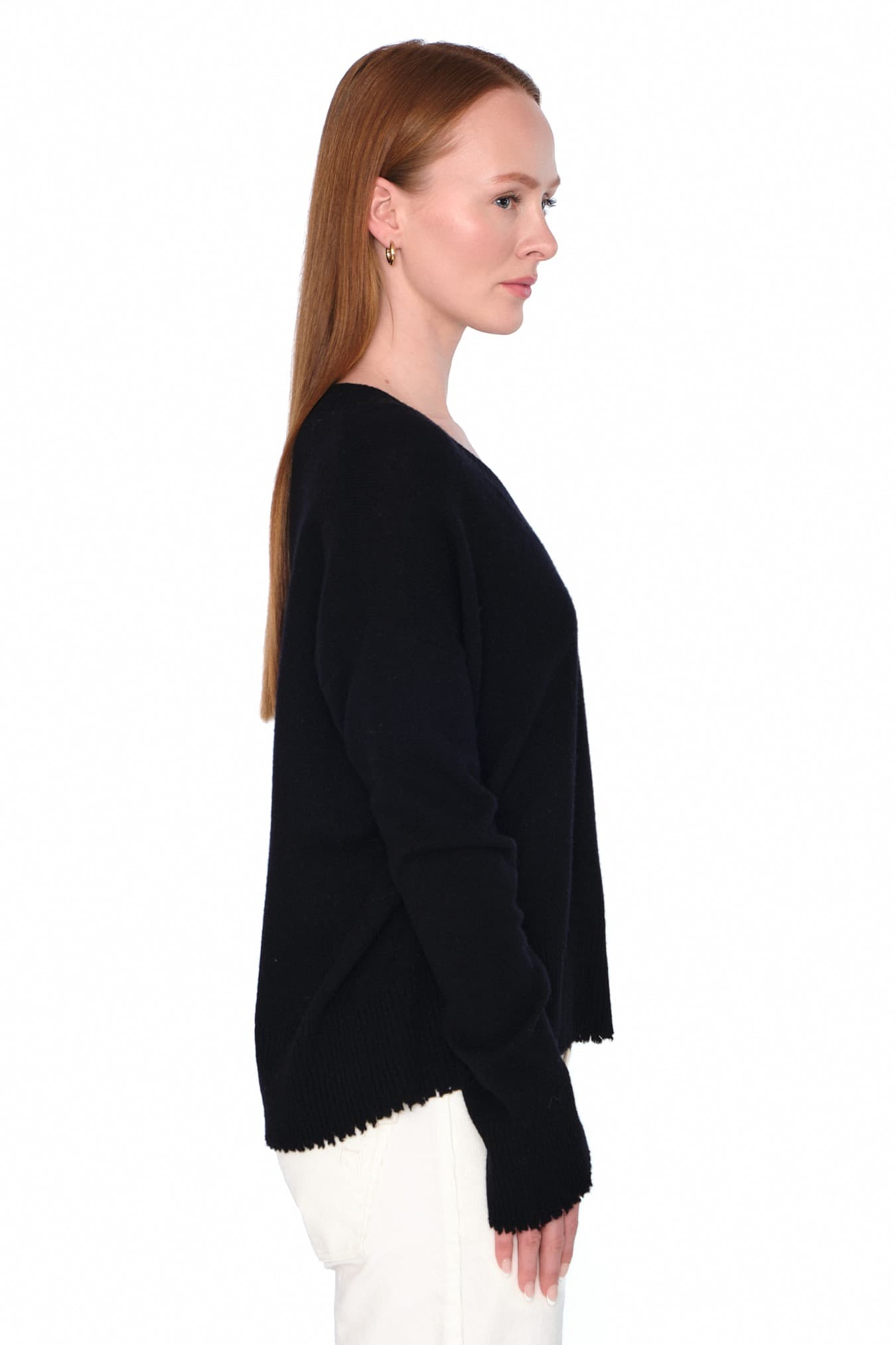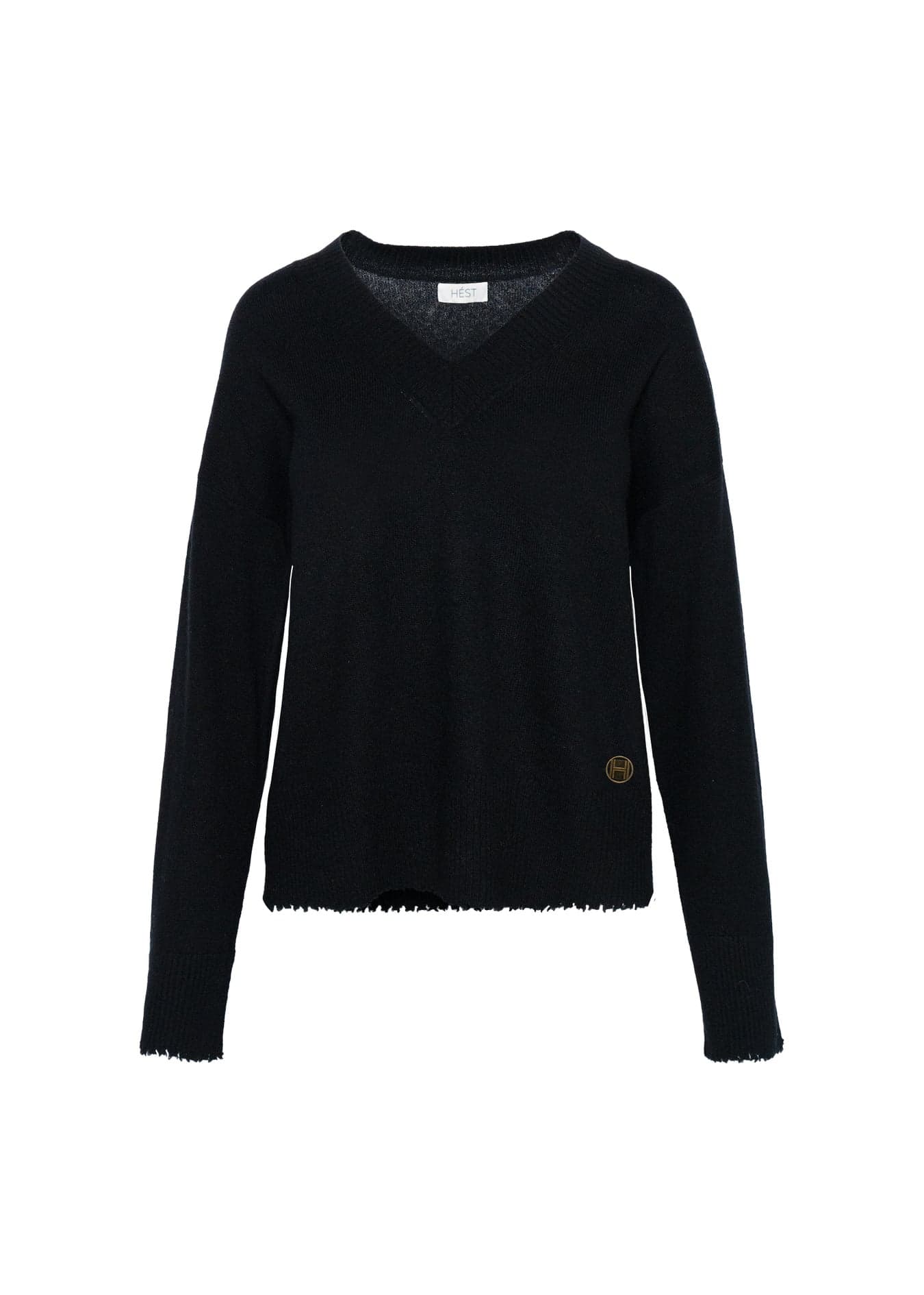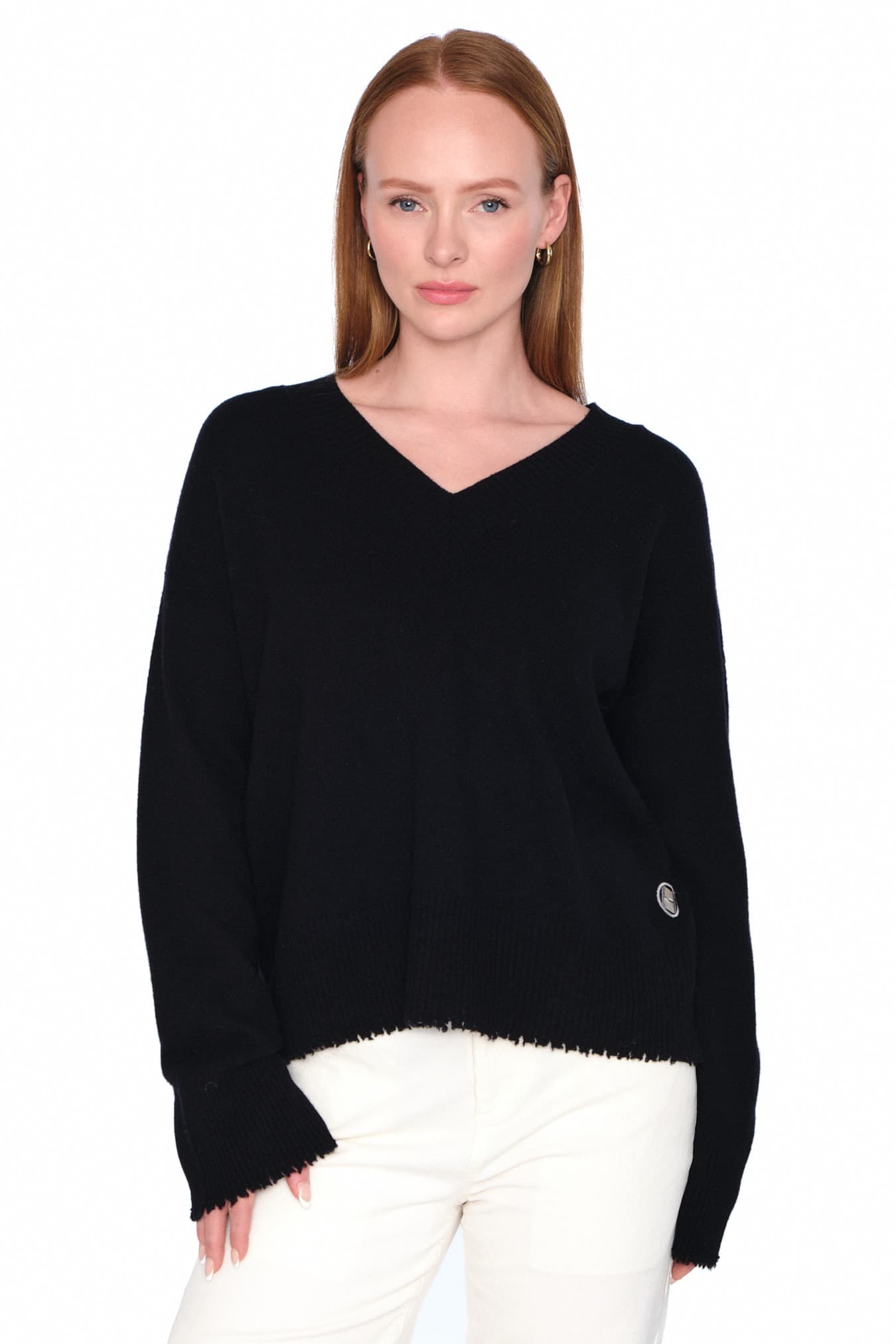 Denne avslappede V-halsgenseren er laget av 100 % ull med myk og behagelig følelse. Med rå kanter nederst og på ermene for et moderne, avslappet uttrykk. En allsidig genser som kombinerer komfort og tidløst design.