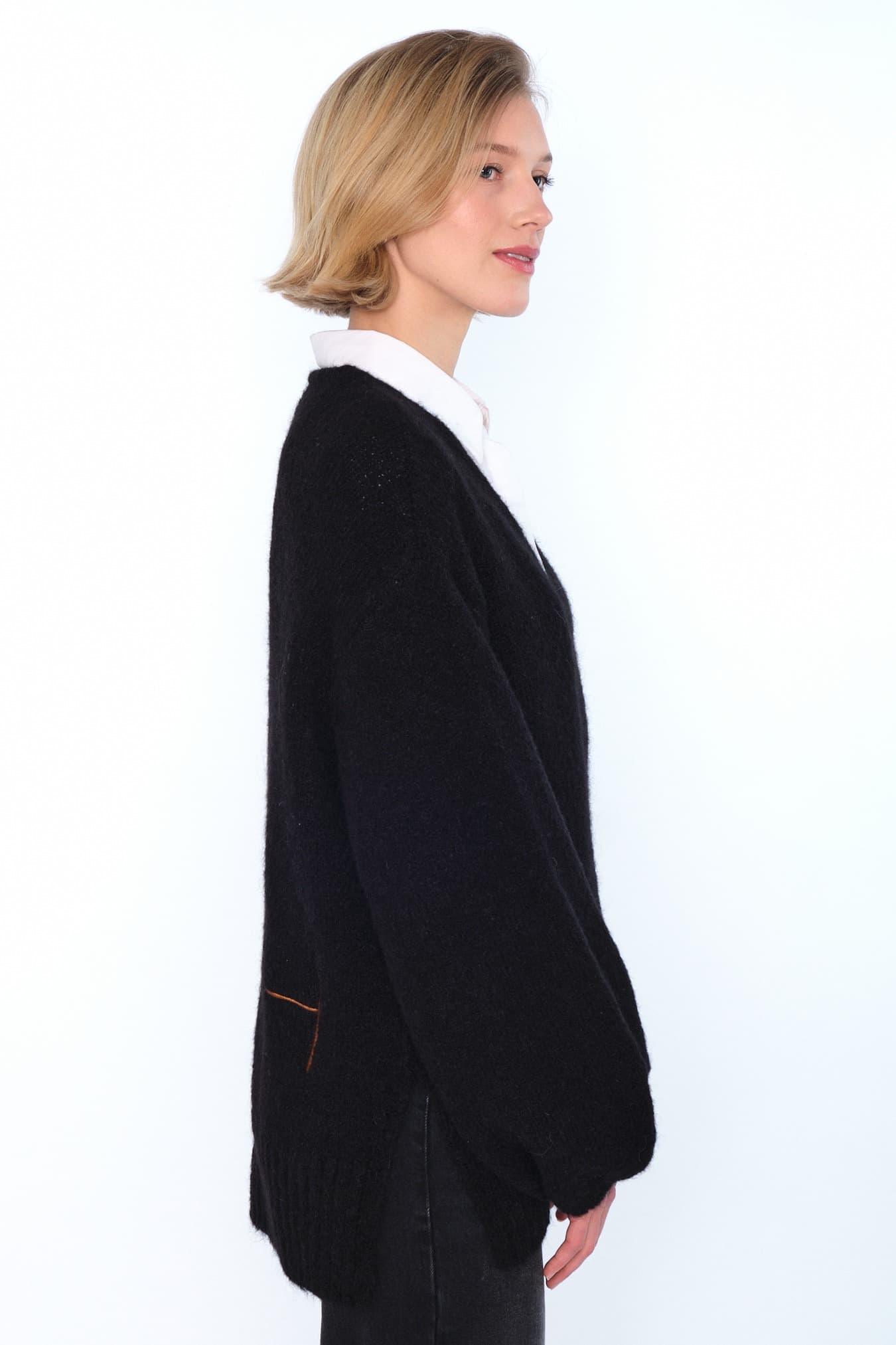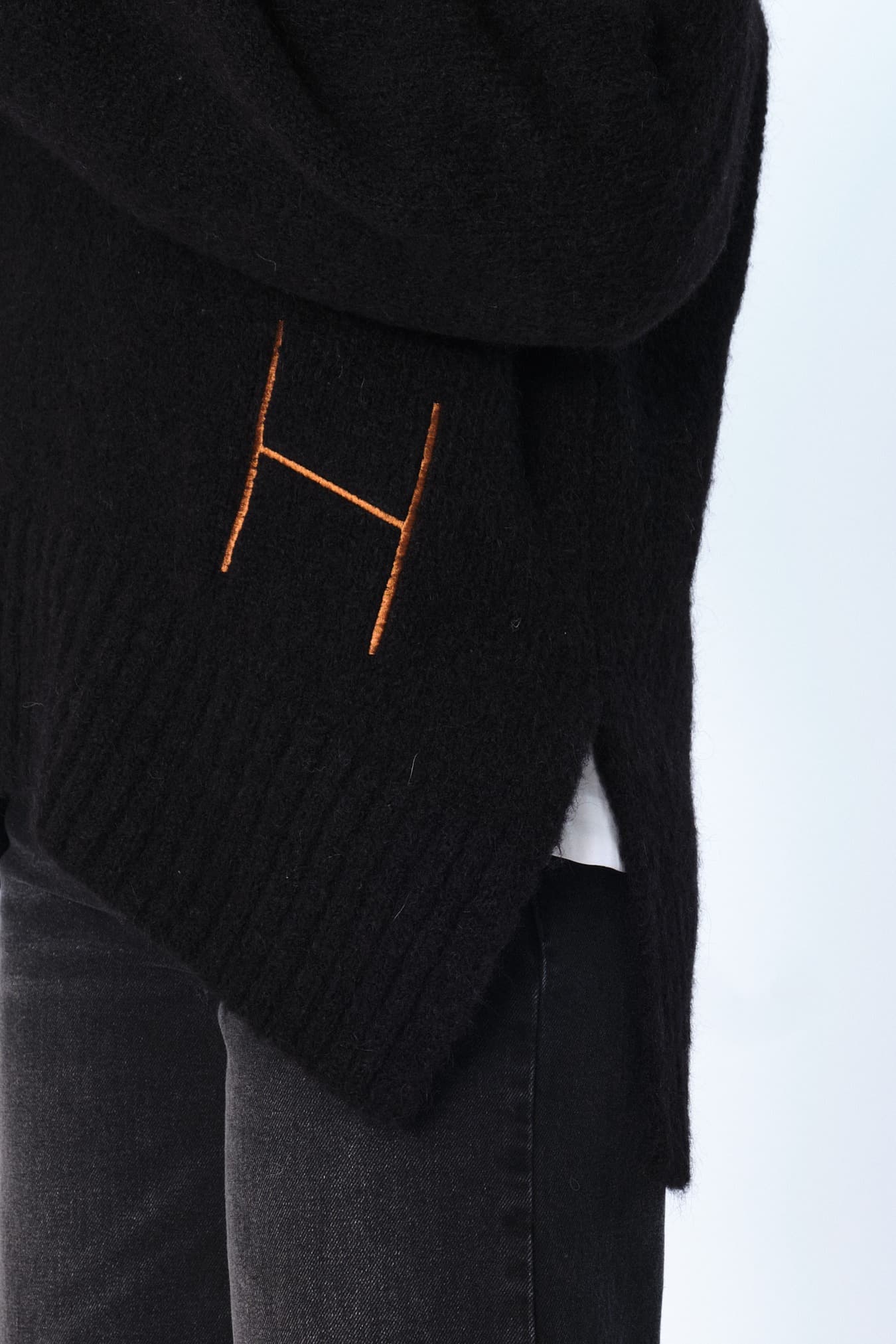 Sofie Sweater er strikket i en myk alpakka-blanding med flatterende V-hals og buet frontkant. Avsluttes med delikat H-broderi for et sofistikert uttrykk. Et tidløst og feminint plagg med en lett og elegant silhuett.