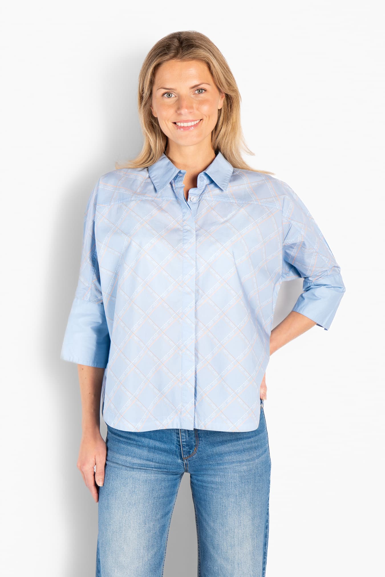 En elegant skjorte med et sofistikert print og en avslappet, moderne silhuett. Designet med klassisk krage og vide trekvartlange ermer for et uanstrengt og sofistikert uttrykk. En allsidig favoritt som enkelt kan styles fra hverdagsbruk til mer pyntede anledninger.
