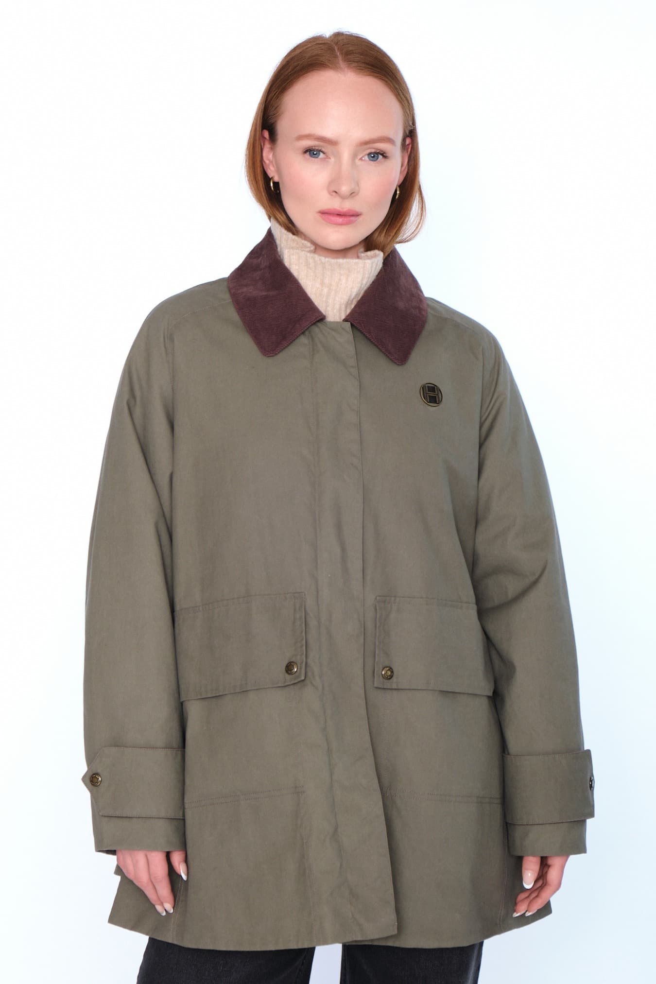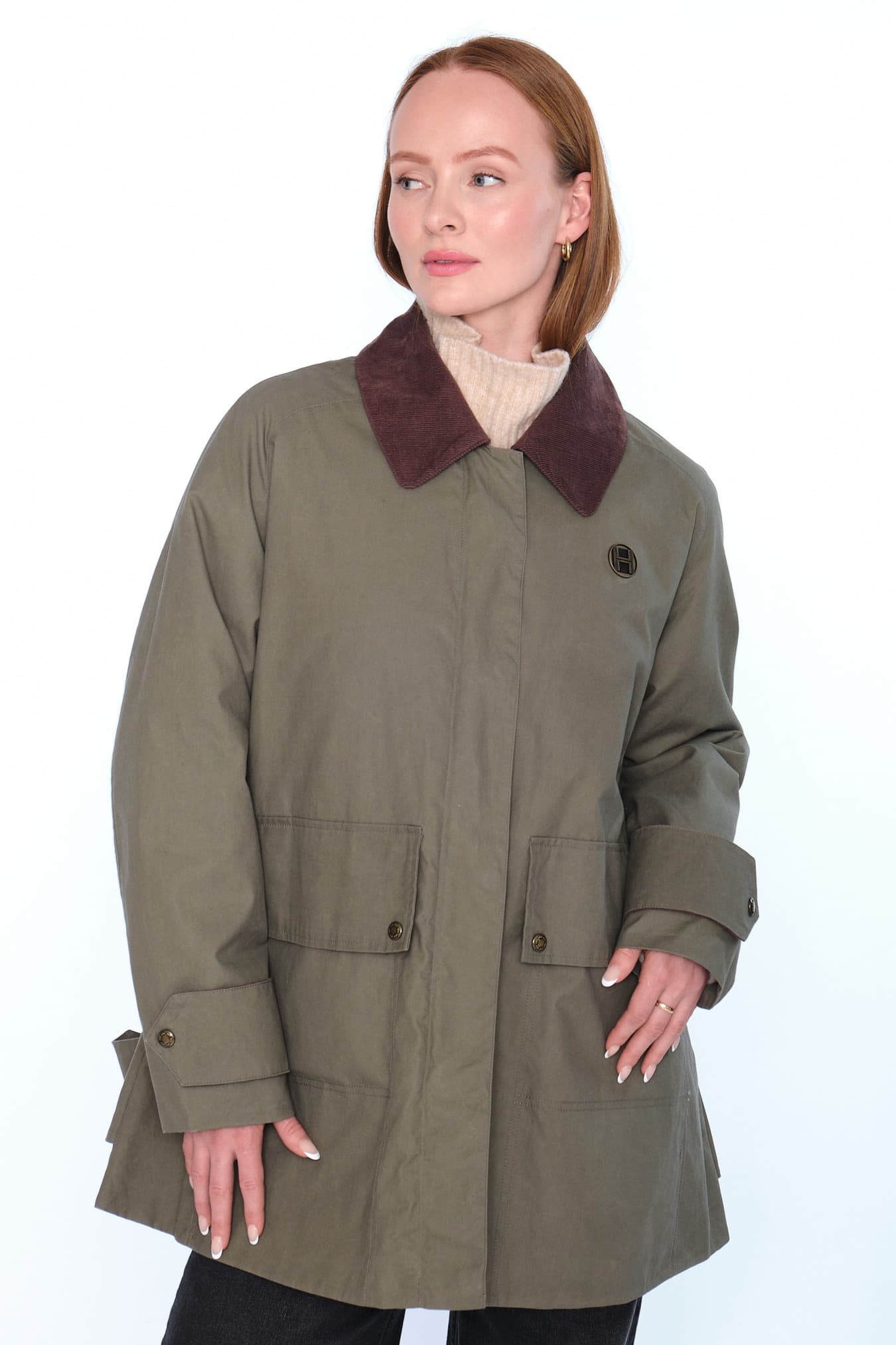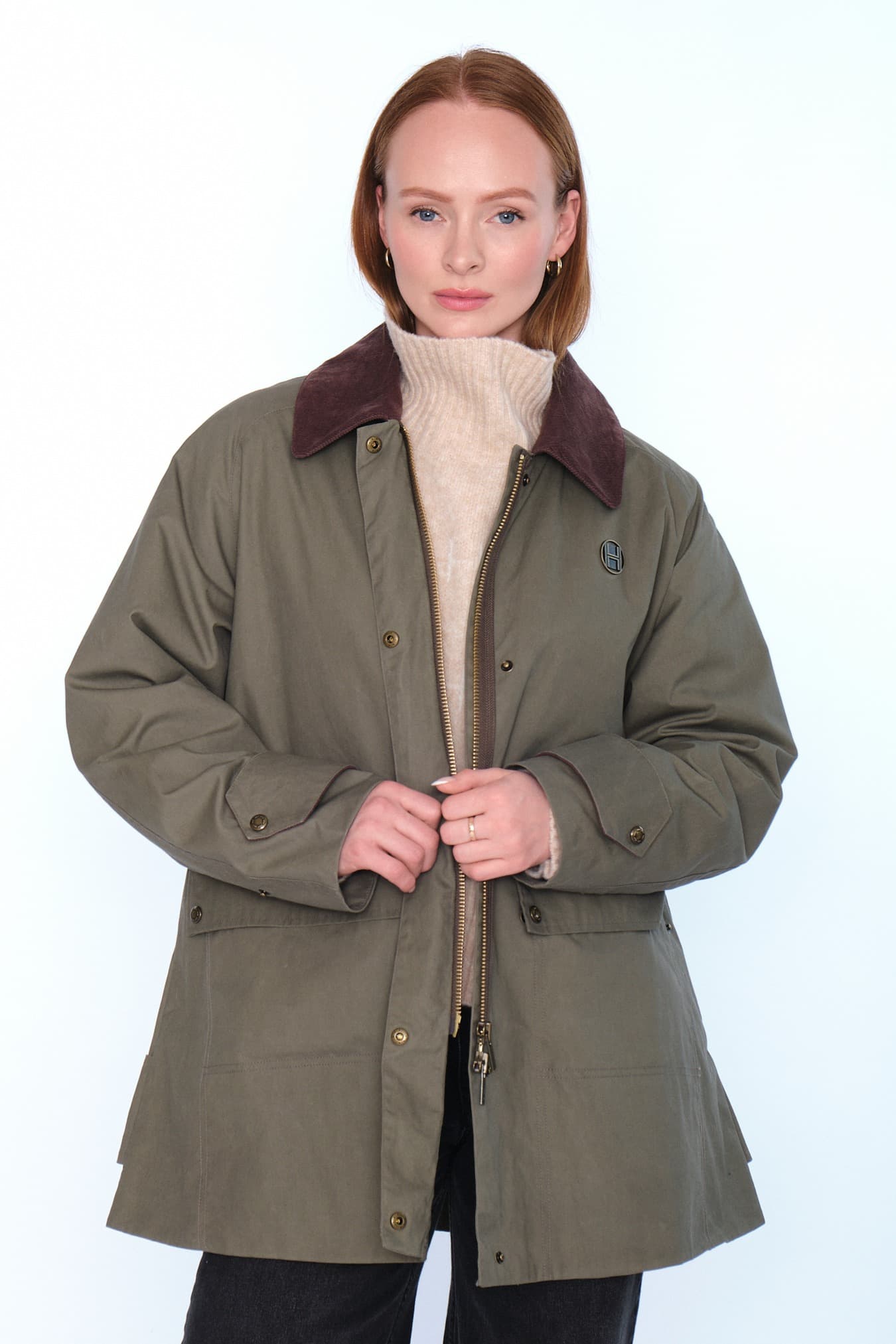 Ofelia Jacket har en avslappet passform med signatur-H-broderi på lommer og bærestykke. Laget av 100 % vokset bomull med karakteristisk kordfløyelskrage. En perfekt kombinasjon av klassisk stil og moderne detaljer.