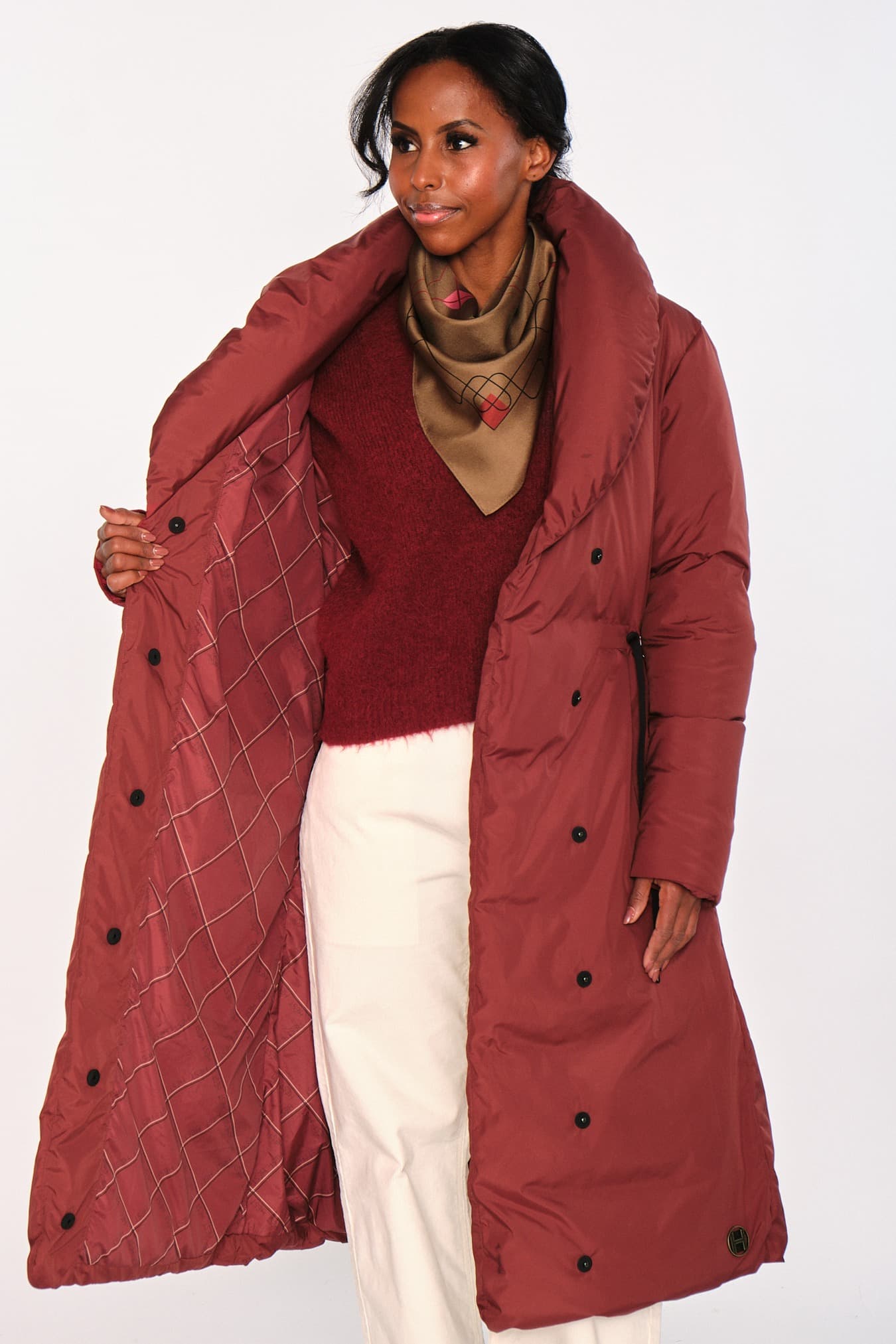Veda Coat har avslappet passform, sjalskrage og belte i livet, med metall-H-emblem nederst. En elegant kåpe som balanserer stil og komfort på en enkel måte. Et tidløst plagg som løfter enhver garderobe.