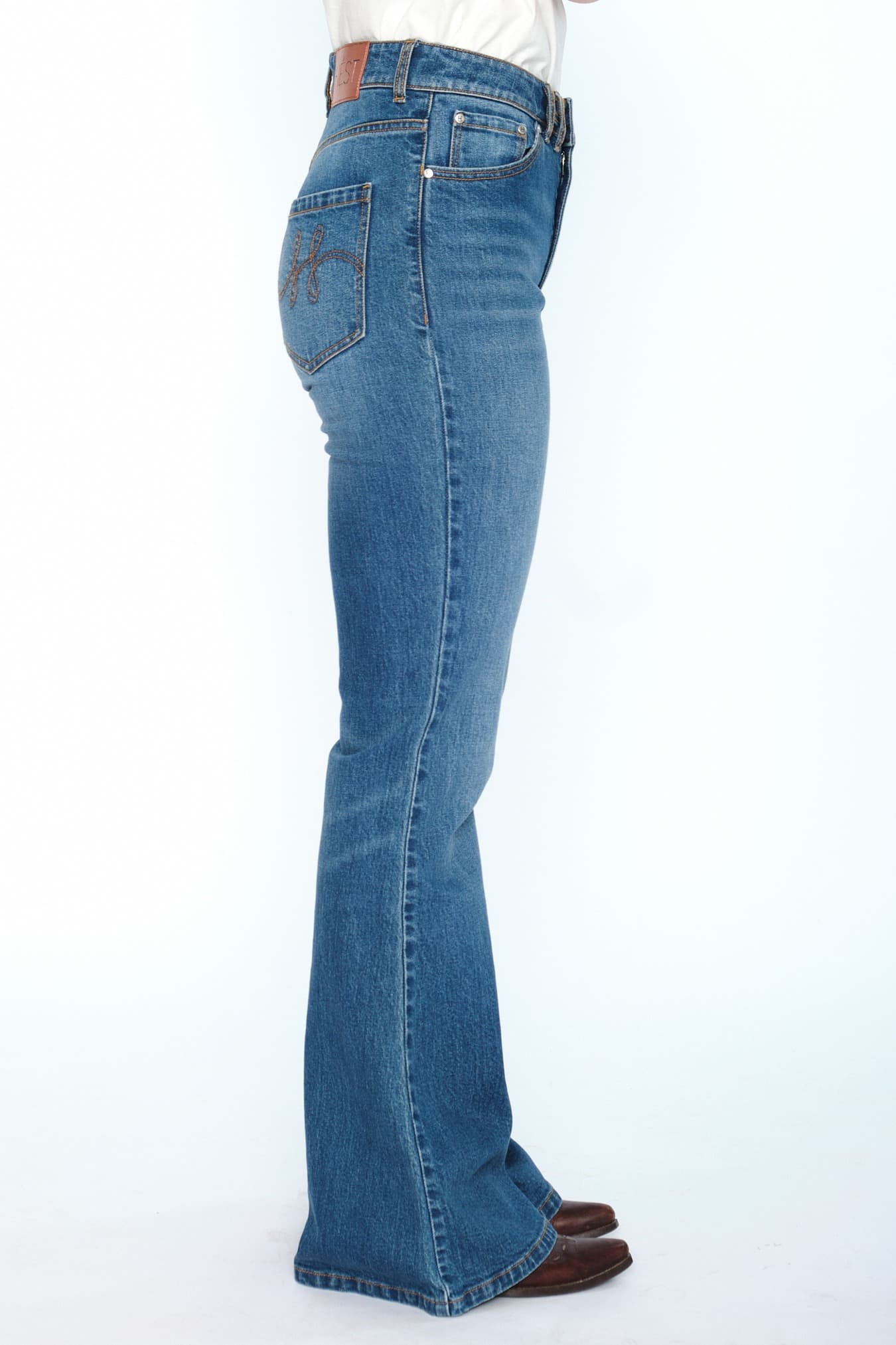 Sonya Boot Cut Jeans har høy midje og en flatterende bootcut-silhuett. Laget i stretchdenim for komfort og god passform. Med signatur-H-broderi på baklommene som et diskret stilgrep.