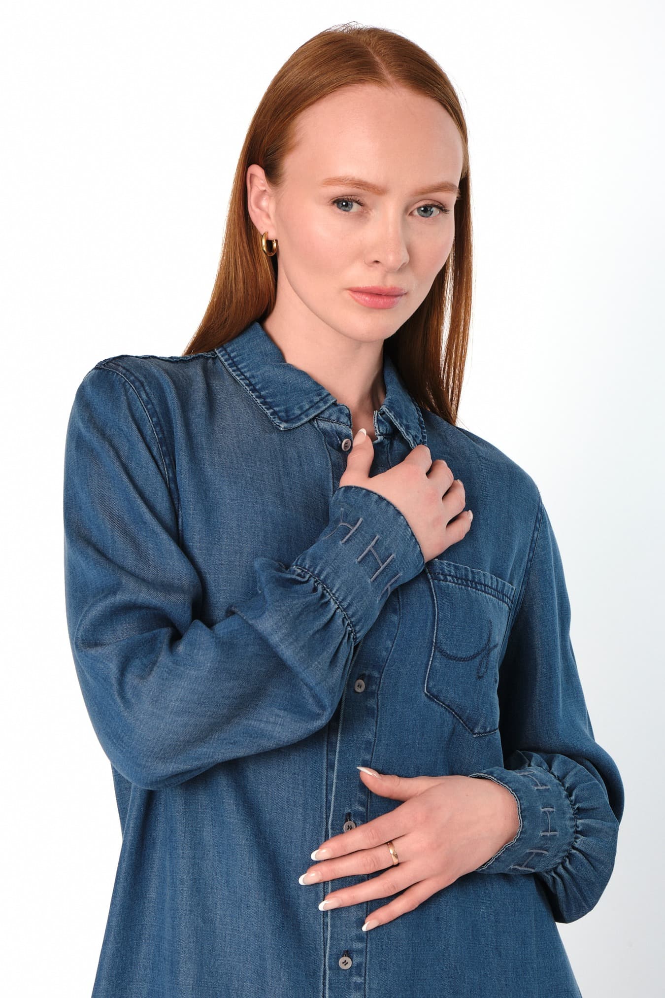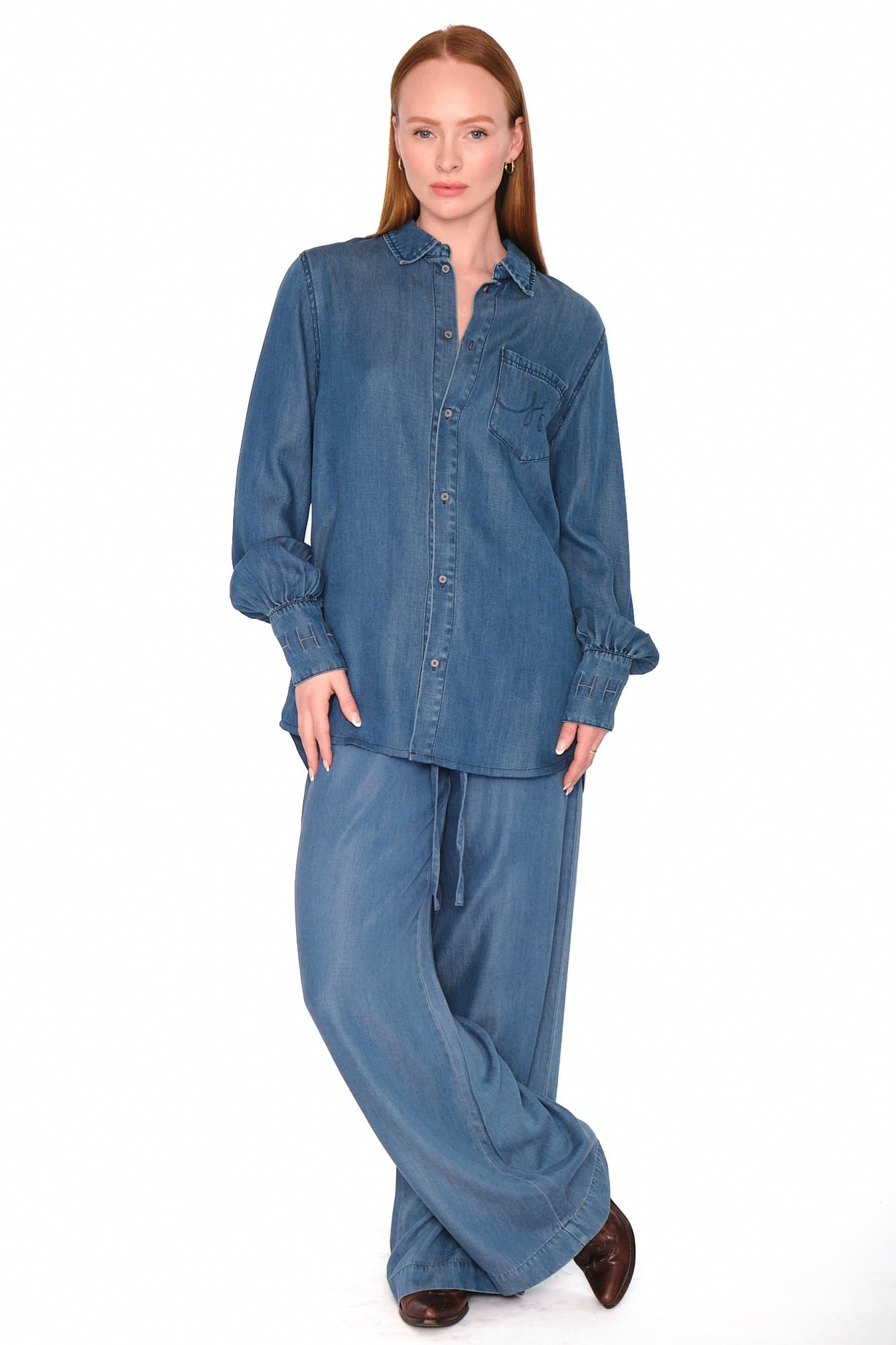Scarlett Shirt er laget av 100 % Tencel med denim-inspirert finish og myk, behagelig følelse. Diskré, kursiv H-broderi på brystlomme og mansjetter gir et sofistikert preg. En stilig skjorte som kombinerer avslappet look med gjennomførte detaljer.