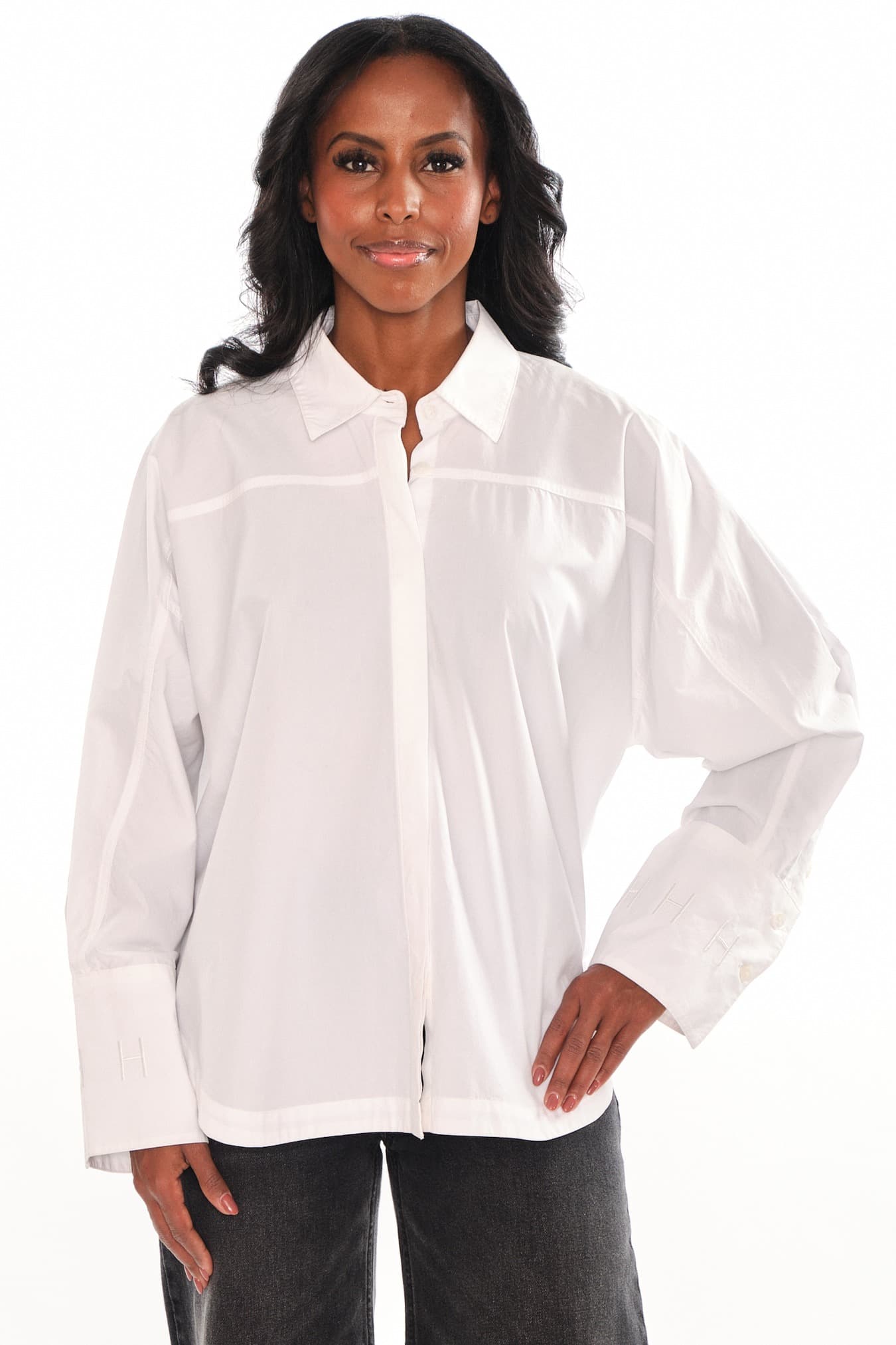 Senna Shirt har en oversized passform og er laget av 100 % bomullspoplin. Med diskret H-broderi på mansjetter og nederst på ryggen. En stilig og avslappet skjorte med moderne, gjennomførte detaljer.