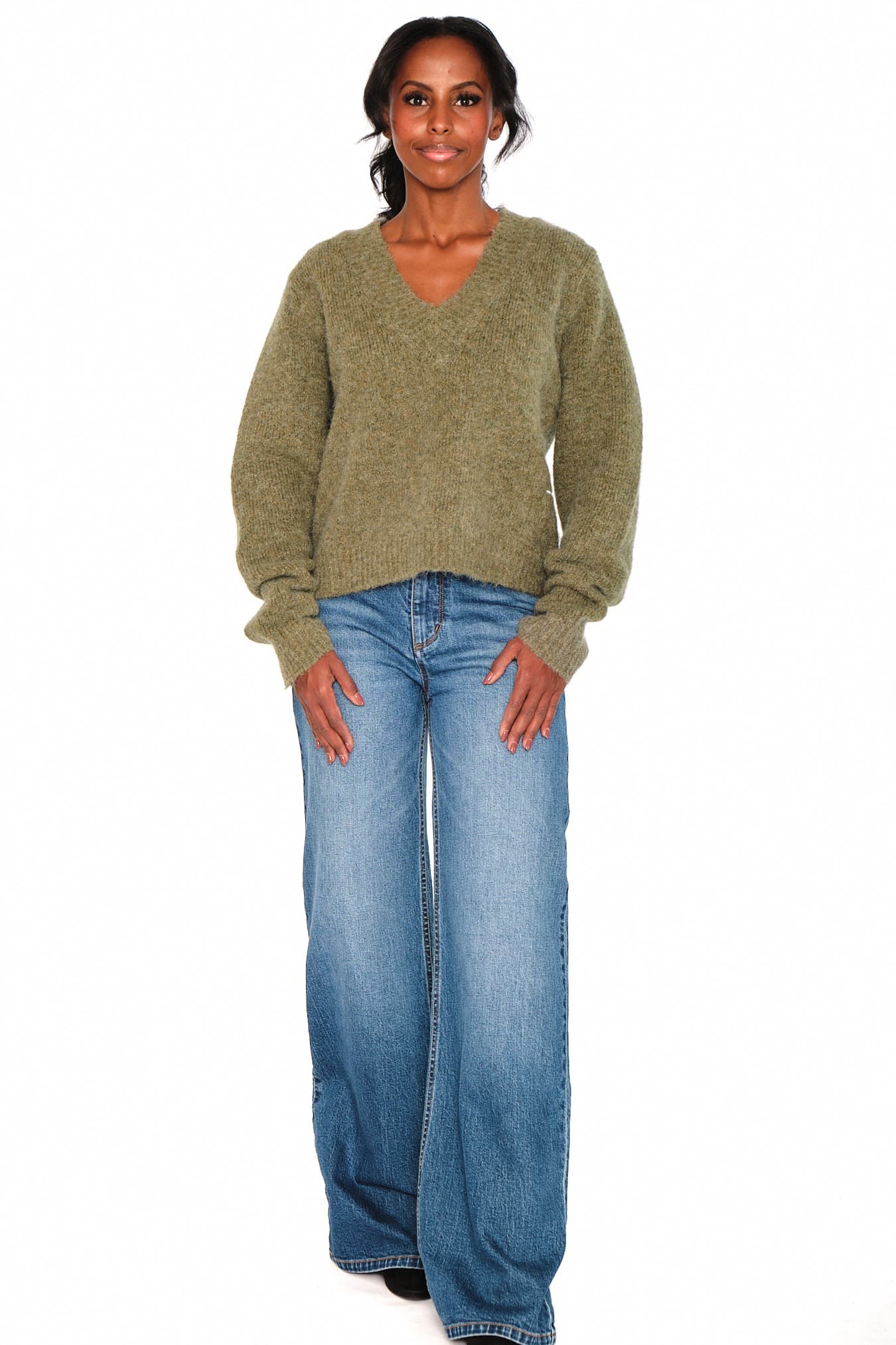 Pernille Sweater features a soft V-neck and refined rib detailing, finished with subtle H embroidery at the hem. Crafted from a cosy alpaca wool blend for warmth and softness. A timeless knit with an effortless, elevated feel.