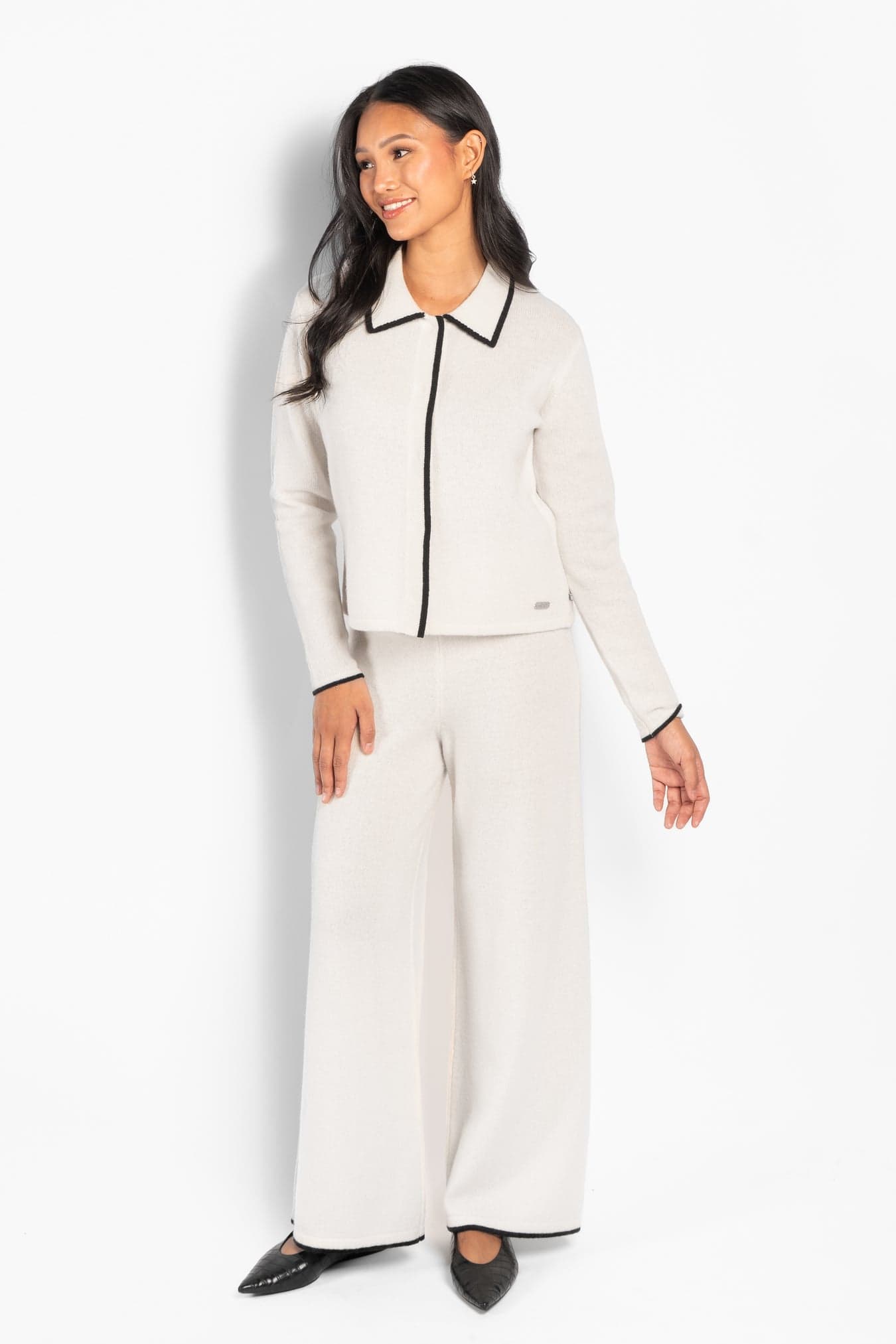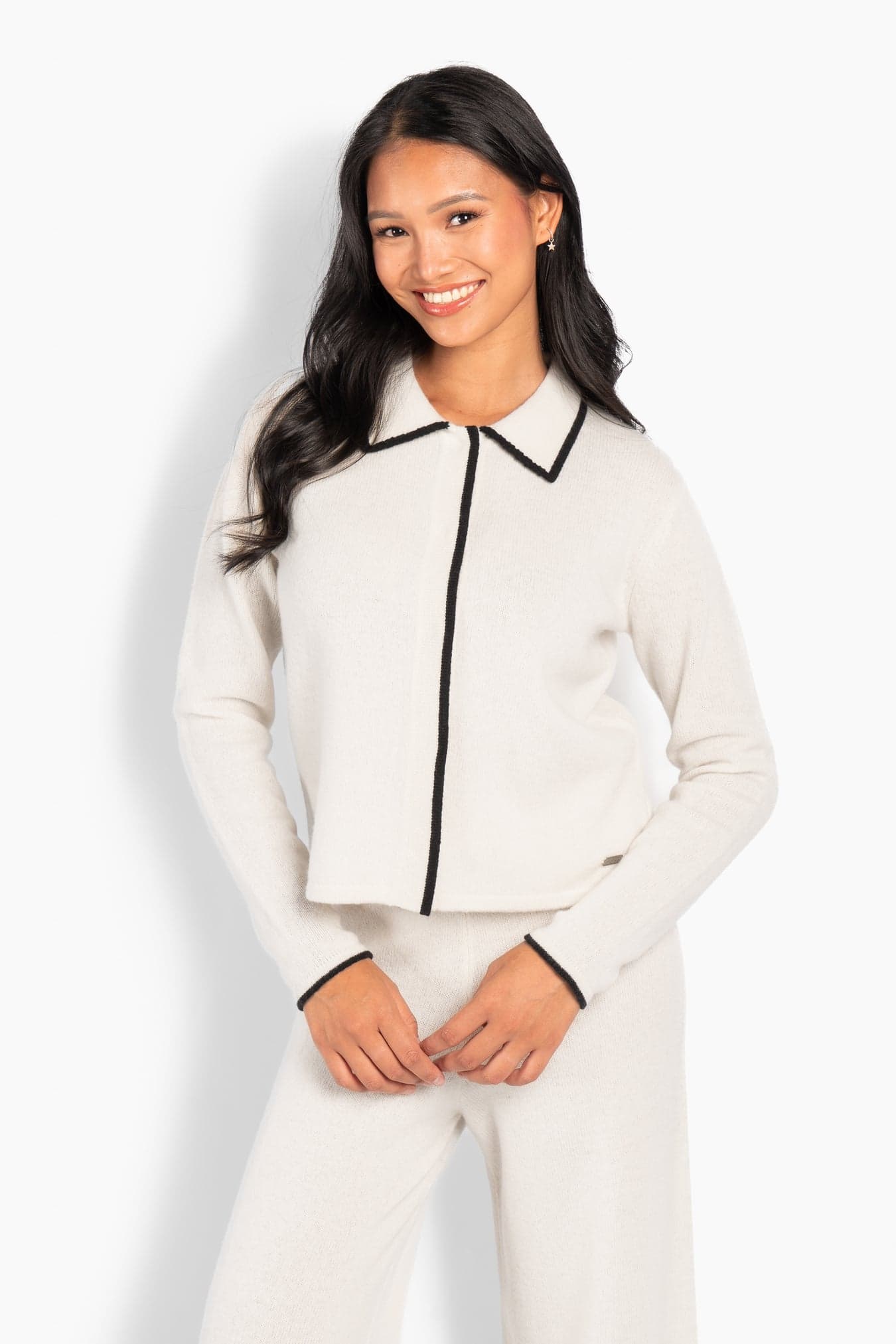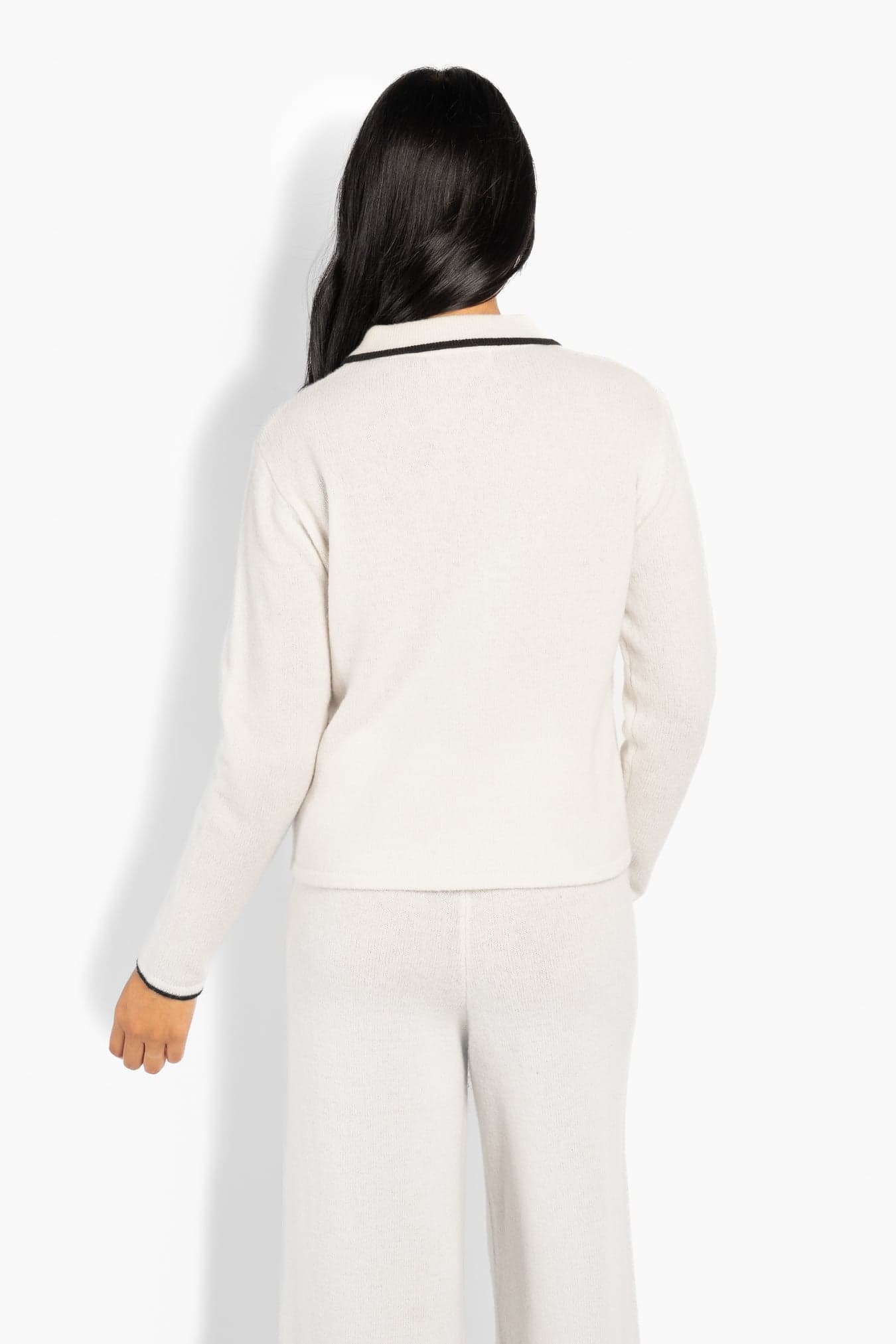 Featuring a V-neckline and contrast detailing along the edges for a subtle, graphic touch. A versatile piece that works equally well on its own or styled with the matching pants for a coordinated look.