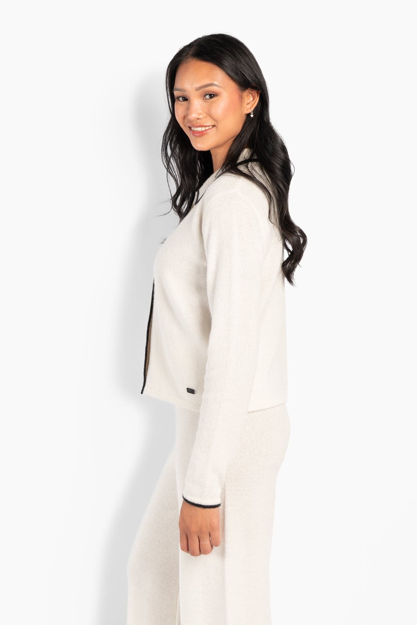 The Vivienne Sweater is designed with a relaxed silhouette and a soft, refined feel. Crafted from merino wool, it offers warmth while remaining lightweight and comfortable.