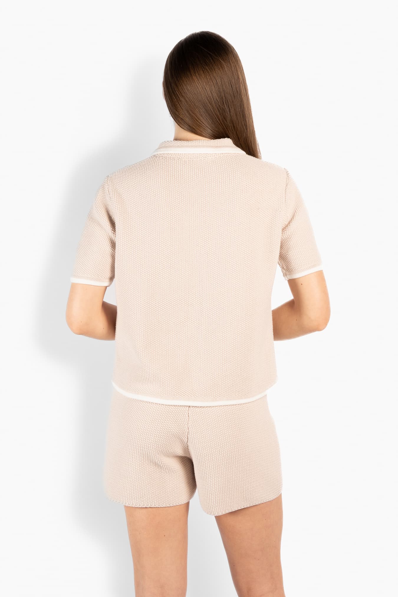 The Soleil Shorts are designed with a relaxed silhouette and a soft, textured feel. Crafted from organic cotton, they offer breathable comfort with a refined finish. Featuring an elasticated waistband with drawstring and a subtly structured knit surface that adds depth to the look. Style them with the matching Soleil cardigan for a coordinated, modern summer set.