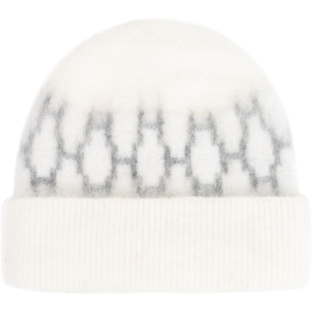 Gera Beanie features a soft, fluffy knit, fold-up cuff, and intricate H pattern.