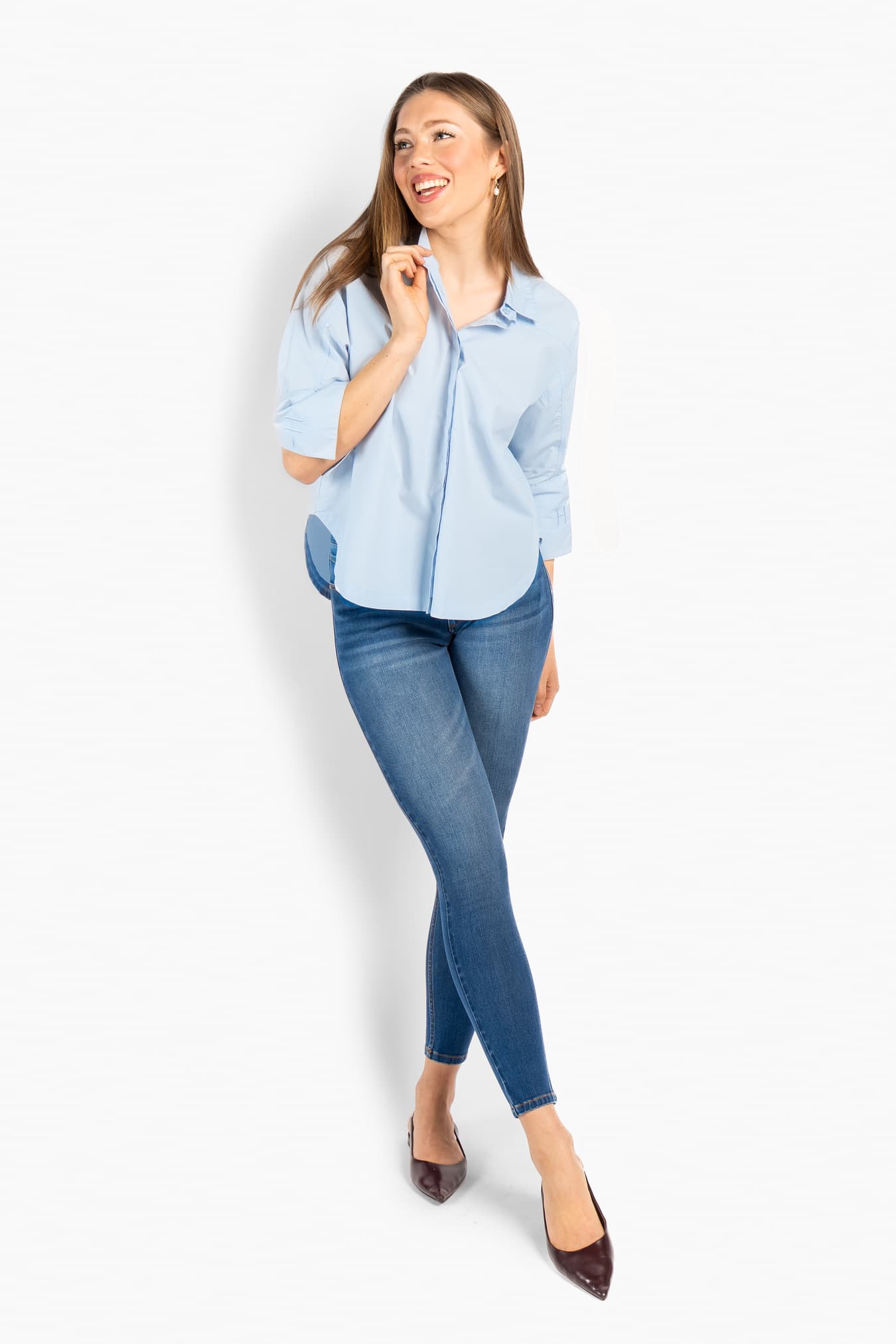 Arya Blouse har et rent og tidløst design med en avslappet, moderne silhuett. Utformet med klassisk krage og vide trekvartlange ermer for et elegant og uanstrengt uttrykk. En allsidig garderobefavoritt som enkelt kan styles fra hverdagsbruk til mer pyntede anledninger.