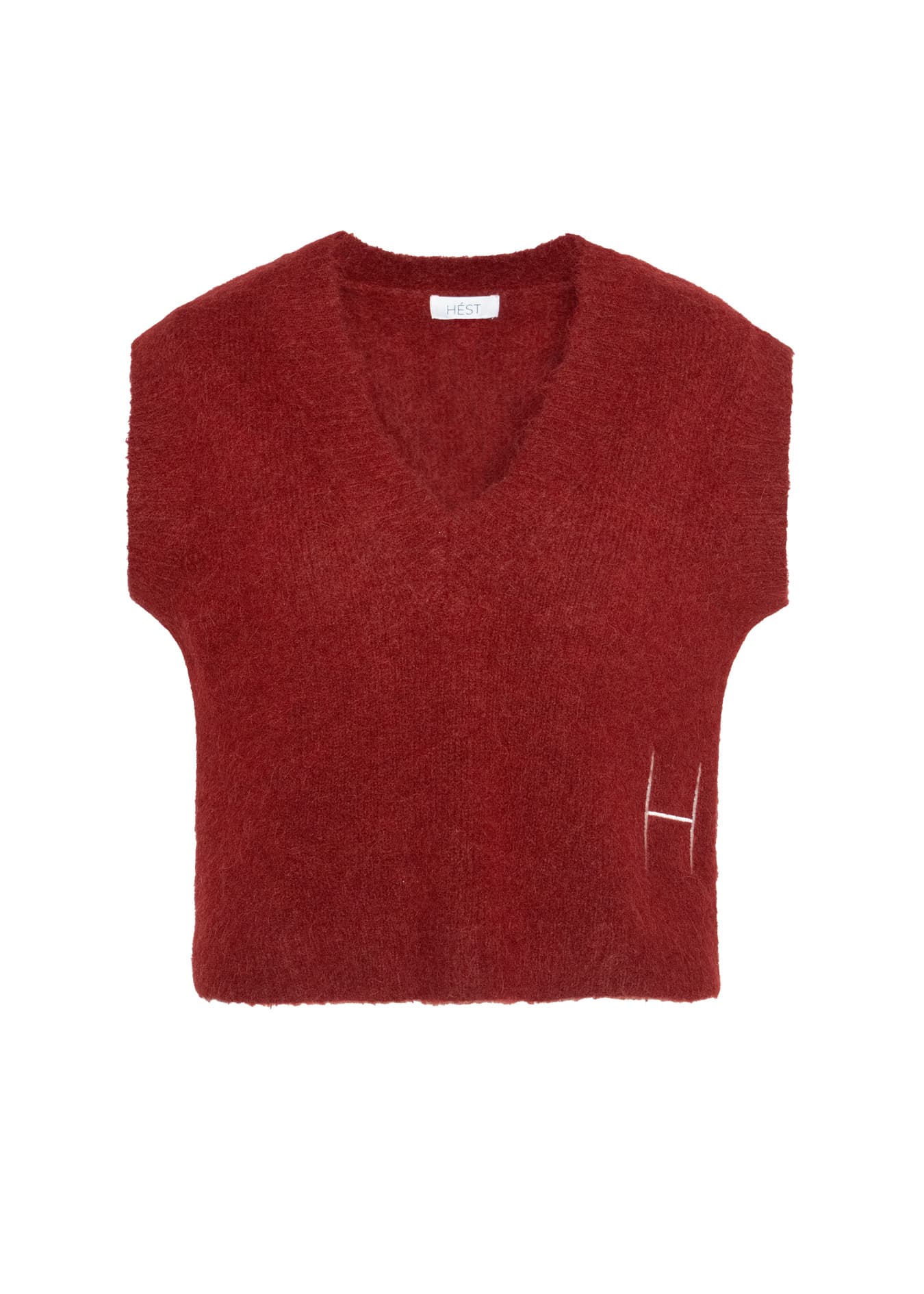 Denne avslappede vesten med V-hals er laget i en myk alpakka-blanding for en lun og behagelig følelse. Ribbestruktur og rå kanter gir et moderne og teksturert uttrykk. Et stilrent lag-på-lag-plagg som tilfører antrekket en oppdatert edge.