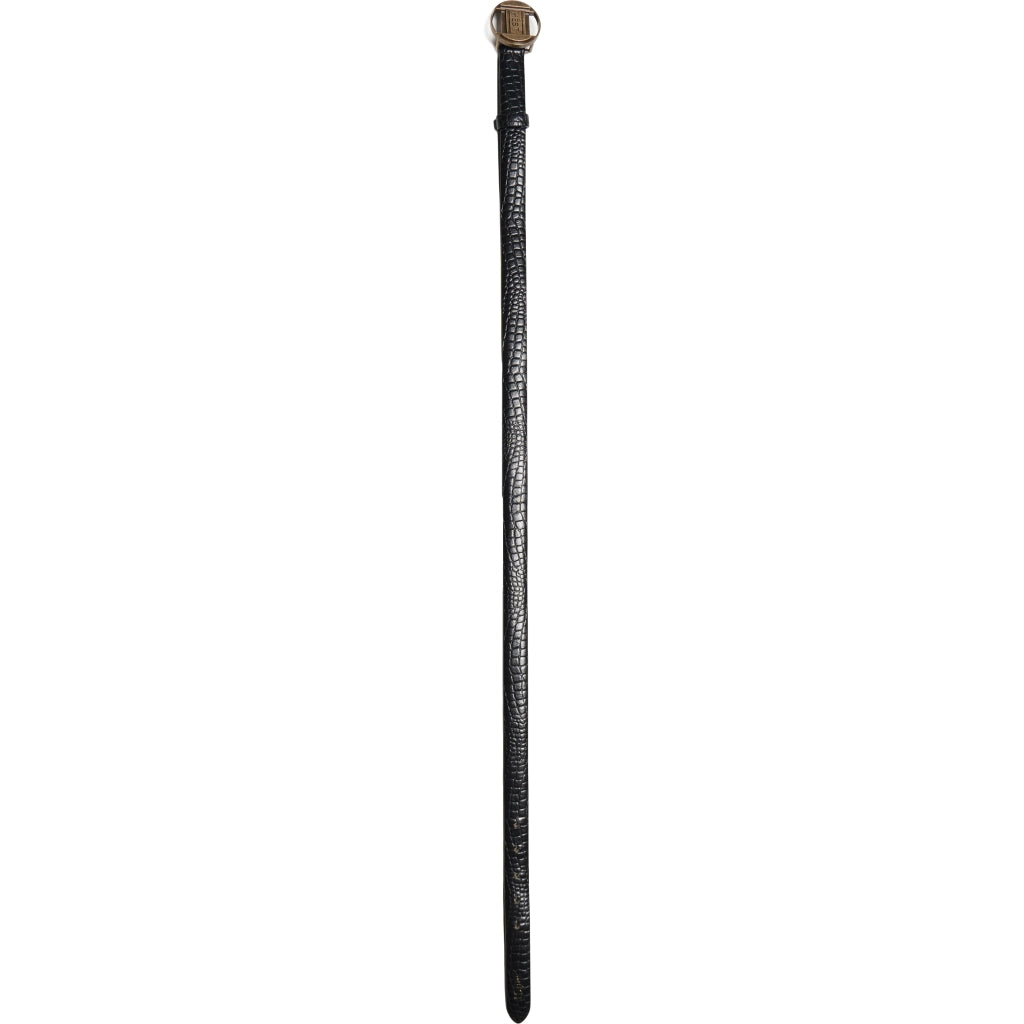 Explore Belt is a slim, crocodile-embossed leather belt designed for a unisex look.