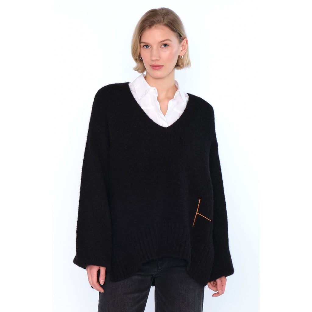 Sofie Sweater is crafted from a soft alpaca wool blend with a flattering V-neck and curved front hem.